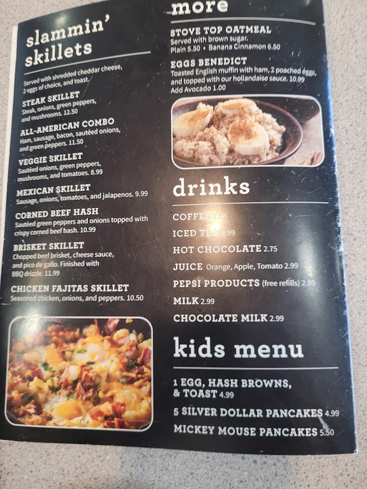 The lunch and dinner sections boast varied choices, such as sandwiches, skillets, and hearty mains like Chicken Picatta and Fish & Chips. Each dish reflects the quality and craftsmanship, aiming to satisfy every palate.